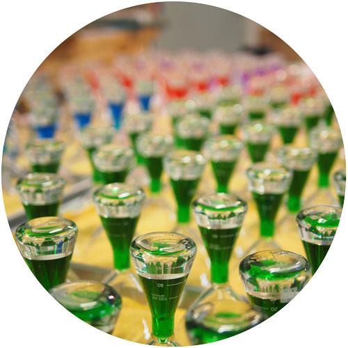 The goal was to combine the nostalgic fun of the laboratory without sacrificing the beauty of its glassware. But how? Keep it simple and let the clean elegance of the chemistry design cues shine through